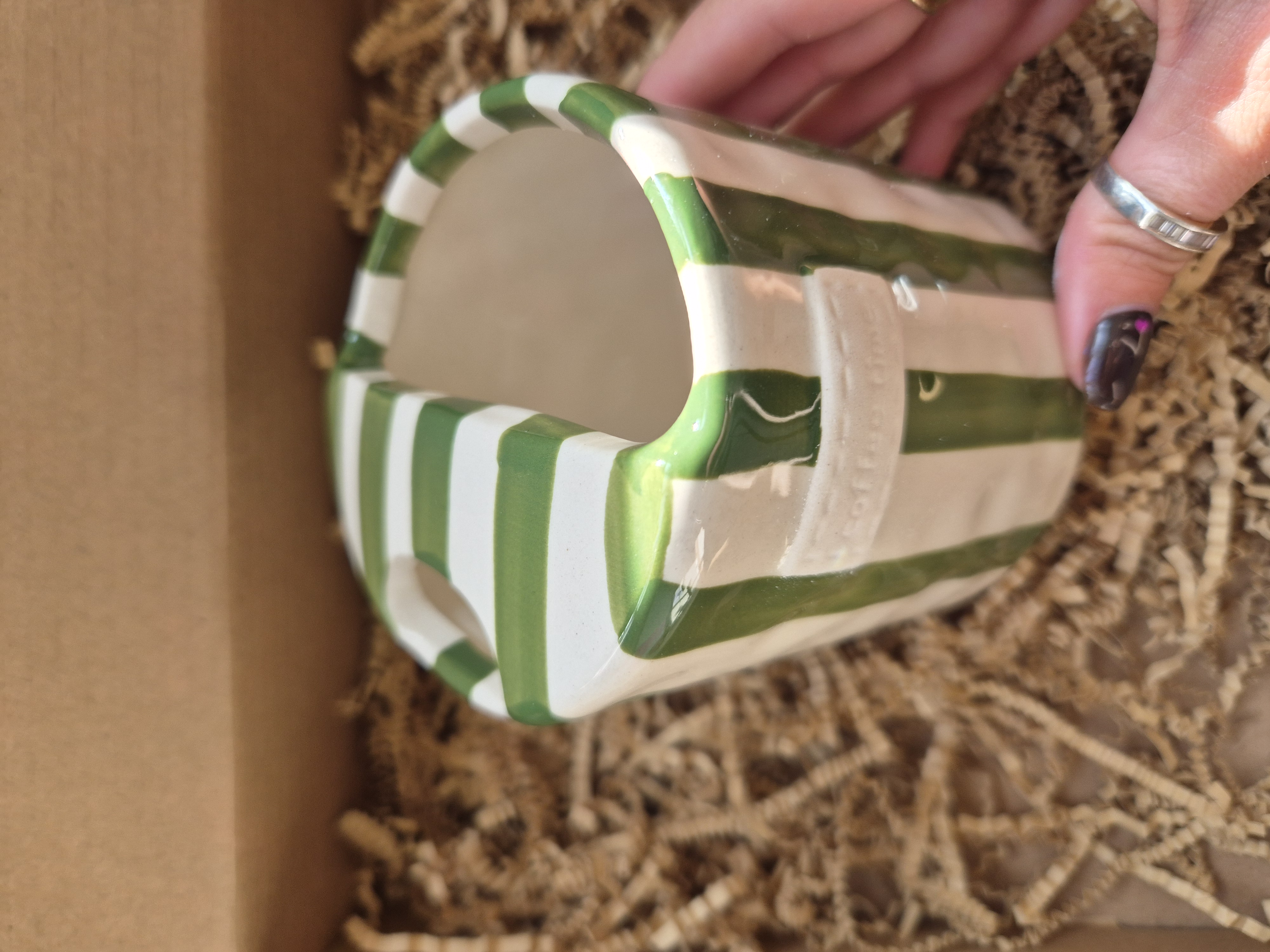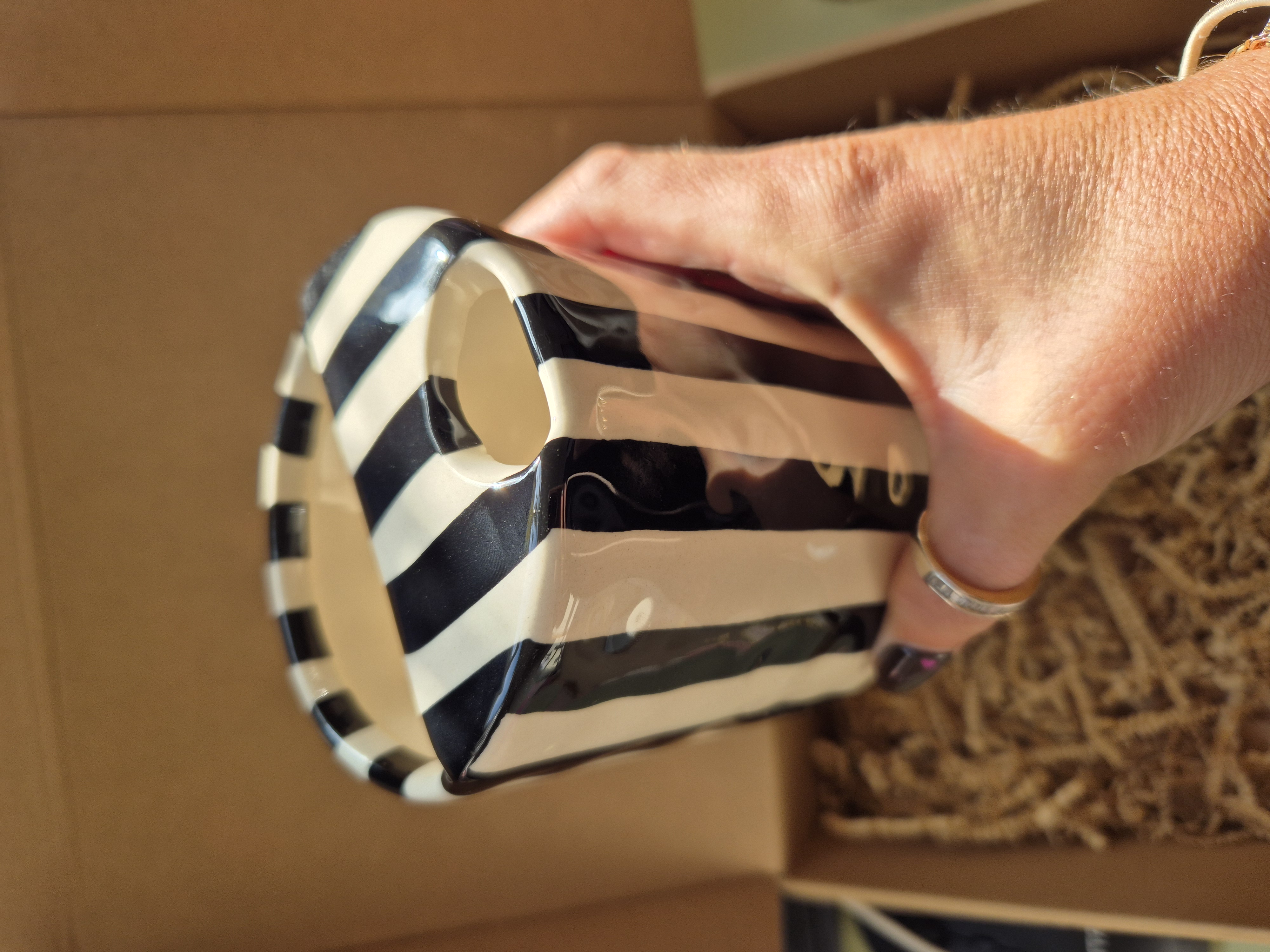 Looking for a cute gift or something to make your takeaway hot drink fancy? This striped ceramic takeaway mug is perfect to ensure your morning starts off right… This cup will be your new best friend!